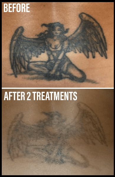 Scarring and pigment changes of the skin are possible side effects of laser tattoo removal, however, because we are using the FracTat method, scaring is of minimal risk.